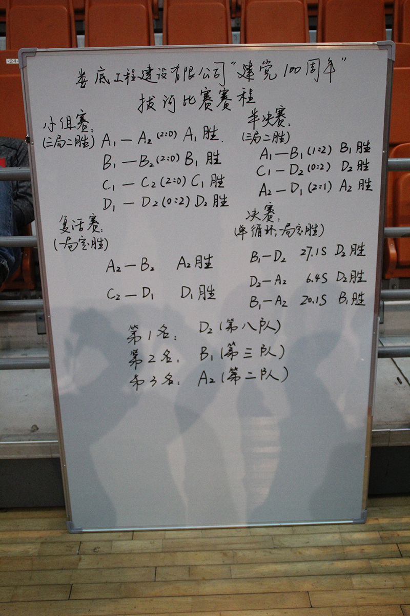 本次比賽根據(jù)隨機(jī)抽簽組隊(duì),以“12人對12人拔河,此次賽制分為淘汰賽、復(fù)活賽、半決賽、決賽四個階段。在比賽過程中,各隊(duì)人員都顯示出最強(qiáng)的比賽陣容,齊心協(xié)力,勇爭第一!為保證比賽的公平、公正、公開,賽會特設(shè)裁判1名,記錄員1名,維持秩序人員4名,另外還有現(xiàn)場攝影者1名。
